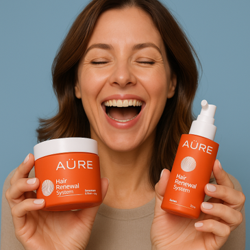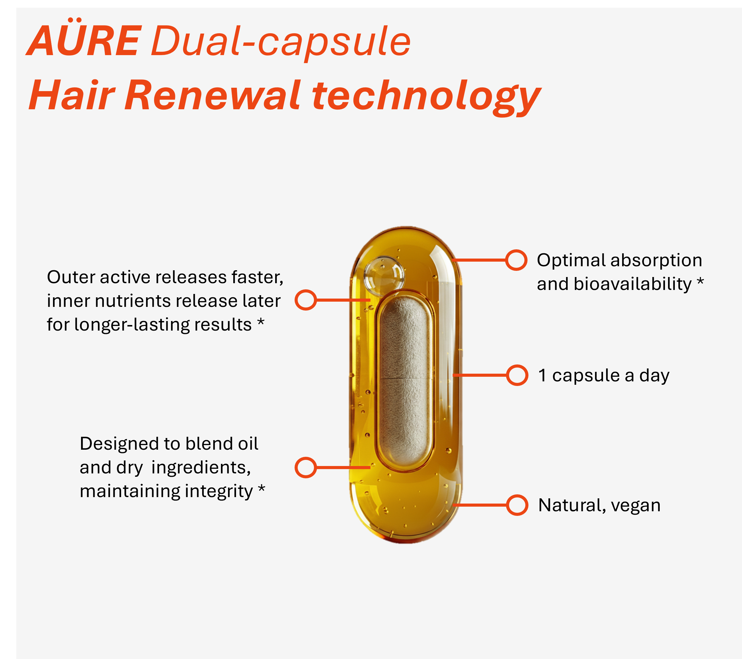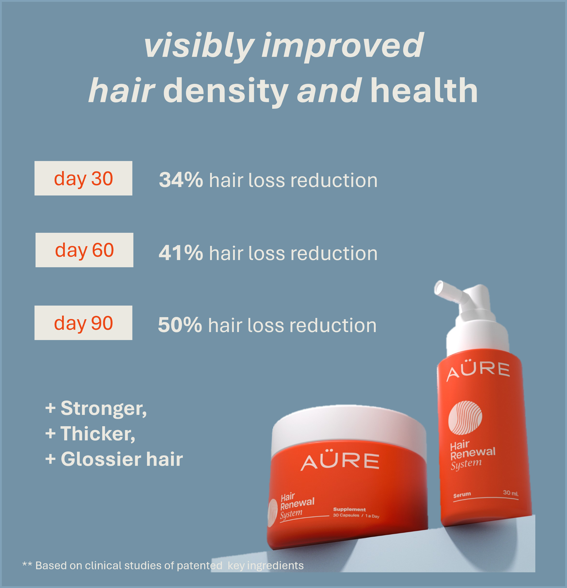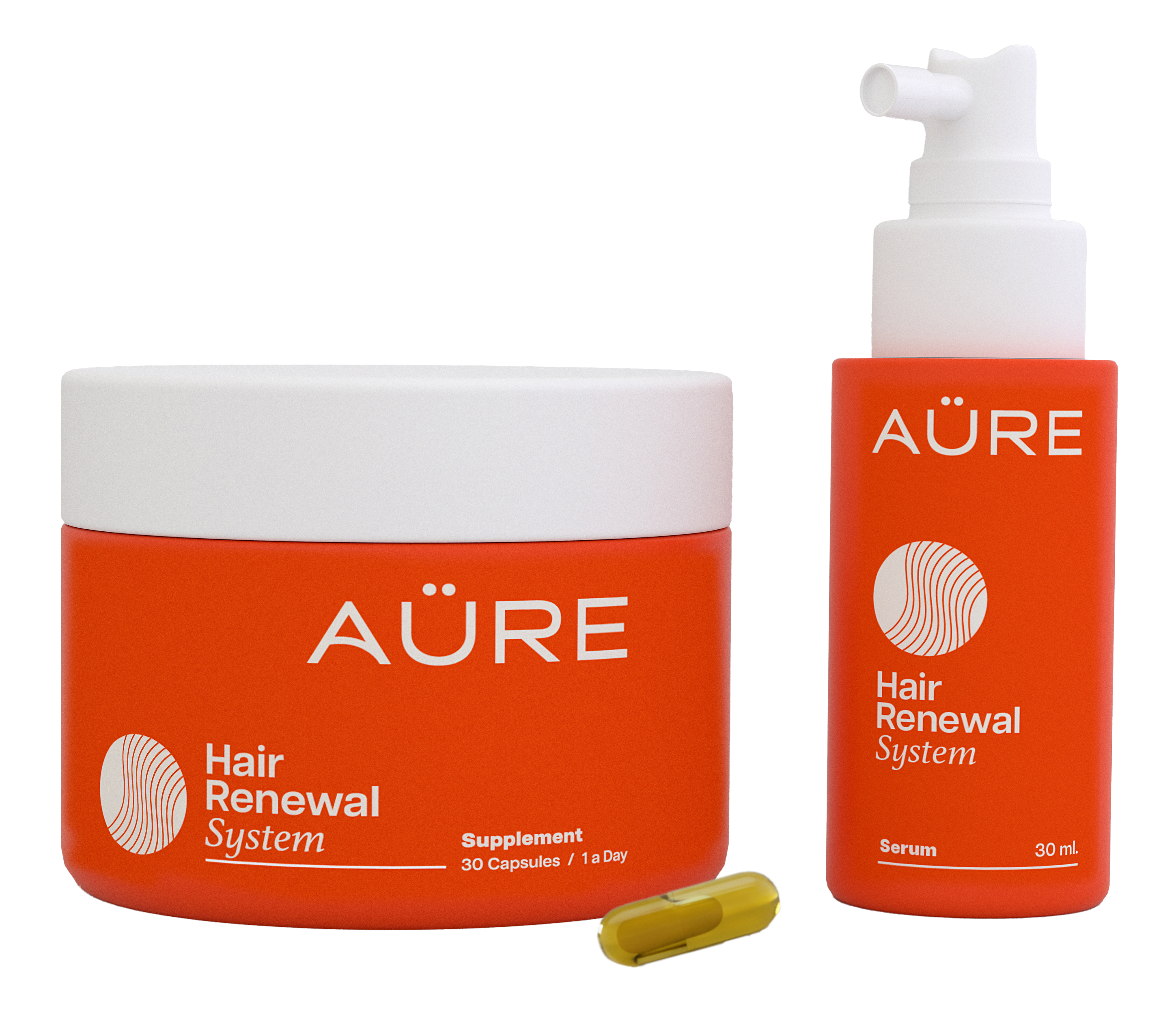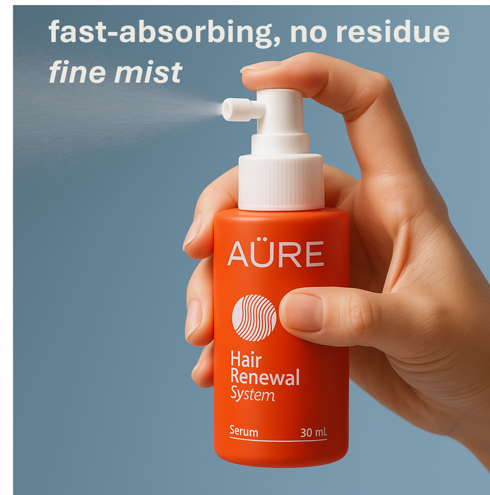 The AÜRE Dual-Boost System restarts your hair’s growth engine.